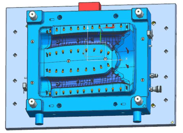 在汽車注塑模具中,針對汽車保險杠產(chǎn)品,模具設計時通常會采用先進的內(nèi)分型面技術。其優(yōu)點是分型夾線隱藏在保險杠的非外觀面上,在汽車上裝配后看不到外觀夾線,不會影響產(chǎn)品外觀。但這種技術在難度與結(jié)構上都要比外分型保險杠復雜,技術風險也較高,模具成本與模具價格也會高于外分型保險杠很多,但因外觀美觀,在中高檔汽車中被廣泛應用。